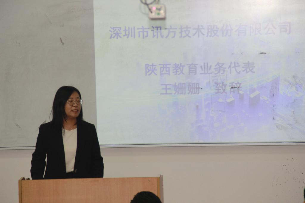 在开幕式上,计算机公司党委书记李绥波、华为陕西政企教育行业总经理刘志涵、深圳讯方陕西教育业务代表王姗姗分别致辞。李绥波在讲话中表示,促进高校毕业生就业创业,既是民生,也是国计,希望能以此次双选会为契机,加深公司与用人单位在人才交流、产业合作等方面的合作,搭建起校企间合作共赢桥梁。