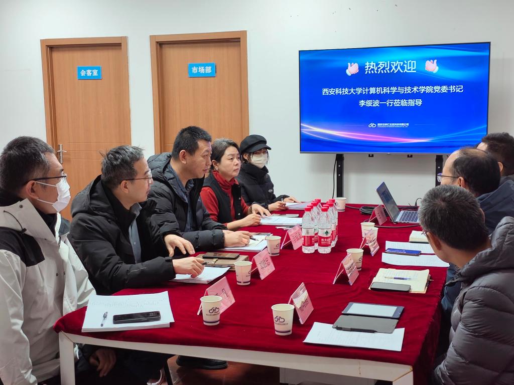 1月15日,计算机公司党委书记李绥波、党委副书记郭胜忠、“成长护航工作室”创意总监靳玉萍及师生代表一行5人前往西安云锦汇信息科技有限公司开展访企拓岗促就业活动。公司总经理方阳、销售总监孟宪举等参加校企座谈会。