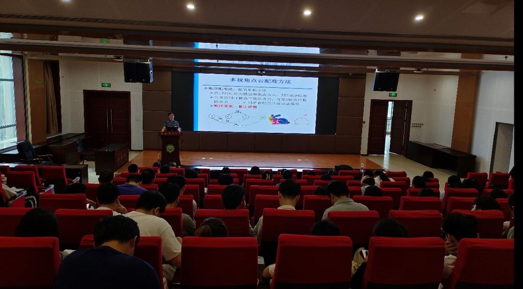 祝教授首先从双视角点云配准问题讲起,向我们介绍了迭代最近点算法以及裁剪迭代最近点算法。在此基础上,又向我们介绍了基于聚类思想的多视角点云配准方法,包括基于高斯分布变化和高斯混合模型的多视角点云配准方法,与传统方法相比,此方法效率高、可靠性好。最后总结了多视角点云配准方法可应用于移动机器人定位与地图创建。