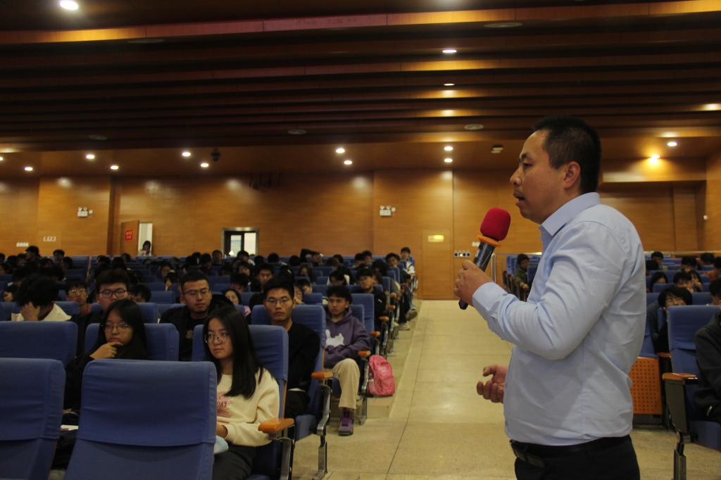讲座现场氛围热烈,蔡鹏与同学们进行了长时间互动交流。