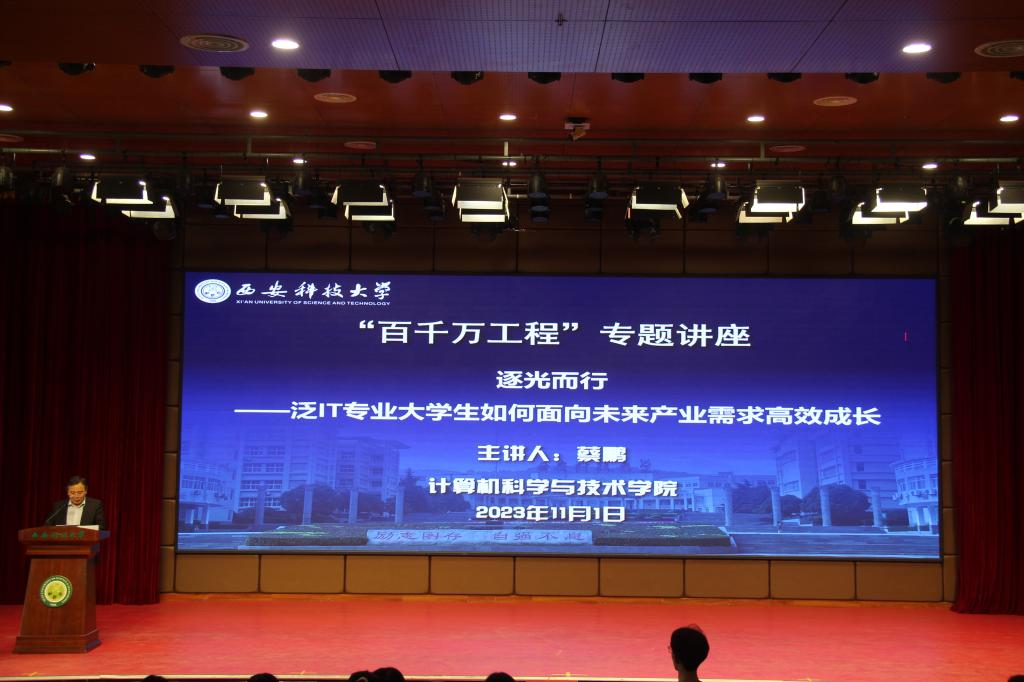11月1日,bevictor伟德官网在骊山校园煤炭科技一楼报告厅举行“百千万工程”讲座暨立人大讲堂第十七讲,西安软件园人才服务负责人,西安市招才引智“校园引才特使”蔡鹏作了“逐光而行——泛IT专业老员工如何面向未来产业需求高效成长”的主题讲座。计算机公司党委副书记郭胜忠主持讲座,辅导员王兰、张珍珍、鞠纪元,员工代表400余人参与聆听。
