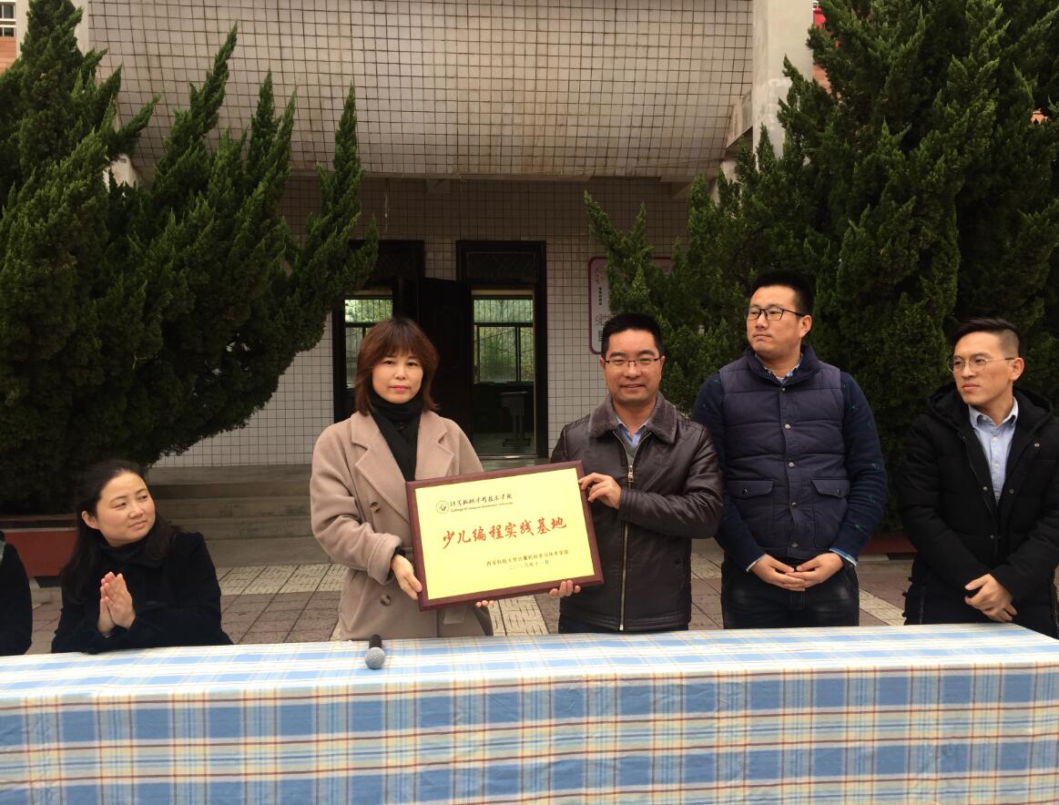 11月15日下午,bevictor伟德官网与临潼行者小寨小学共建少儿编程实践基地授牌仪式在行者小学中心广场举行。计算机公司党委副书记陈伟伯、相关辅导员、老员工志愿者以及陕西贝亦乐教育研究院相关负责人、行者小学师生代表600余人参加了此次活动。活动由小寨小学教导主任温素娟主持。