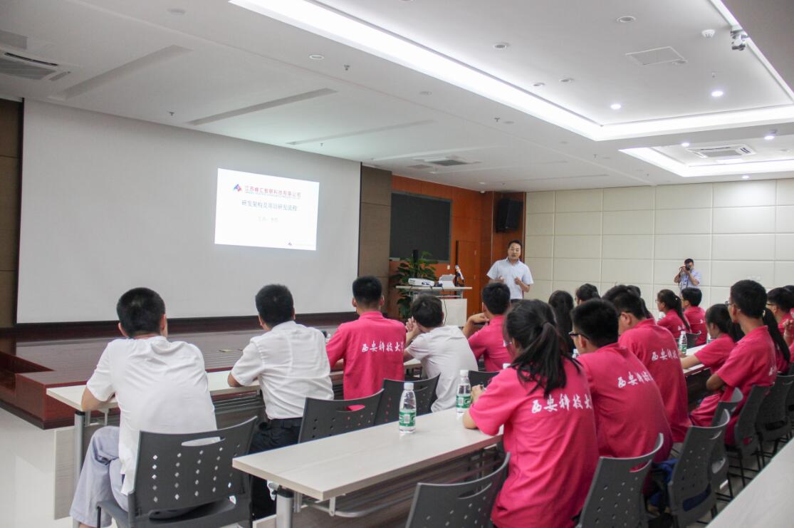 7月18日上午, 伟德官网bv1946创业就业实践调研团一行来到了江苏峰汇智联科技有限公司进行参观交流,顾华经理为实践团成员们介绍了公司的发展历程、组织架构、企业核心文化等公司情况。当天下午,研发部李哲总监及软件、硬件相关工程师分别给实践团成员讲解了该公司的研发架构、项目开发流程以及LoRa技术,并通过太阳能道钉的设计实例向团队成员们详细剖析了项目的设计、开发和应用前景。通过对企业的参观调研与交流,实践团队成员对智能产品的研发、供应链管理、生产制造有了深刻的认识,同时为同学们步入社会进行就业创业打下了良好的基础。