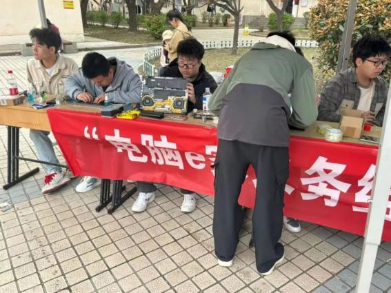 活动如火如荼地进行,每一位电脑e家服务站成员都秉承“弘扬奉献精神”的初心,热情服务于每一位有疑问的同学。直至下午五点,历时七个小时的义务维修活动终于圆满结束。