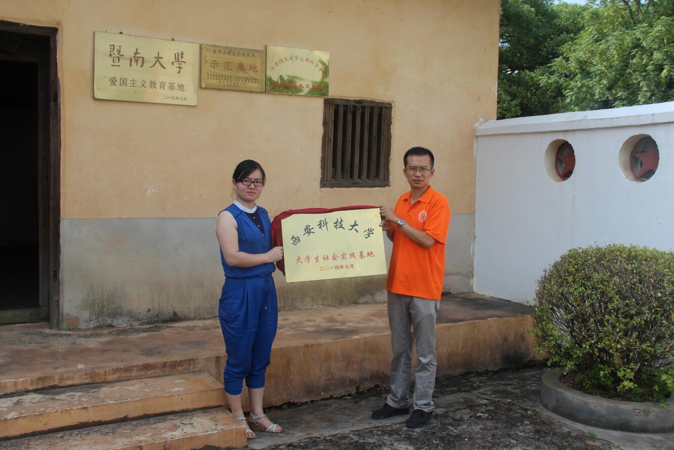7月16日,实践队成员在瑞金市团市委书记阮玉的陪同下到达中国共产主义青年团(少共)中央局旧址举行伟德官网bv1946老员工社会实践基地揭牌仪式,瑞金市团市委书记阮玉、bevictor伟德官网团委书记马继刚、通信公司团委书记郝卿、bevictor伟德官网教师胡军卫参加揭牌仪式。首先,瑞金市团市委阮书记和伟德官网bv1946马继刚老师为实践基地正式揭牌。揭牌仪式结束后,阮书记与伟德官网bv1946师生就团史和瑞金红色文化进行了深刻交流。阮书记希望实践队成员传承红色文化,在实践中进一步加深了解。随后一行参观了中央革命根据地共青团史料馆,主要对苏区共青团组织沿革、团的思想建设、团的中心任务、共产儿童团工作等进行了详细的了解,使得队员们深刻的认识到在那战火纷飞的年代中,团组织就像一轮光芒四射的的朝阳,照亮了苏区广大青年前进的道路,这将会时刻激励实践队成员们在以后学习工作中更加努力,牢记团的光辉使命,在实践中国梦的征程中,拼搏前进。最后在这种浓厚的红色氛围的影响下,全体学员在团中央旧址红旗下追溯团的历史举行了重温入团誓词仪式。