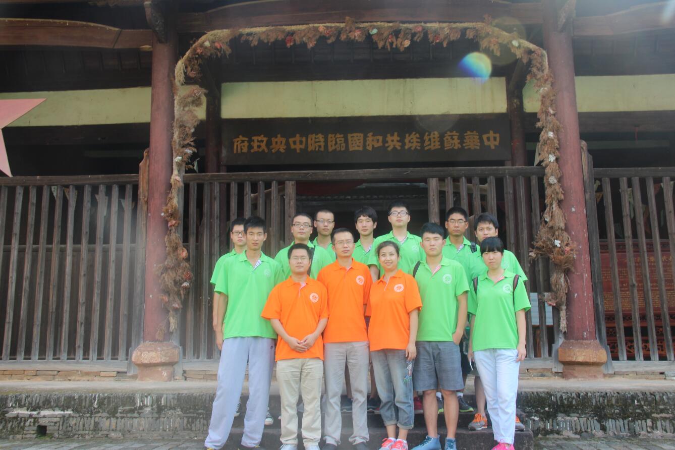7月13日实践队到达江西南昌,当天尽管大雨磅礴,实践队成员还是冒雨参观了八一广场和八一起义纪念馆。之后实践队从南昌出发,于下午到达本次实践活动重要的一站——瑞金,分别抵达瑞金叶坪、沙洲坝等革命遗址,参观了中华苏维埃第一、二次全国代表大会会址和中华苏维埃共和国临时中央政府旧址。一苏大的会址,是赣南一带常见的祠堂,是中国第一个红色政权的诞生地,这次会议也是十八年后新中国成立的预演,在传统的客家族建筑群中,实践队队员仿佛置身于当年的红色时代,踏着先烈们的足迹,深刻体会到当年老革命家们创建苏维埃共和国的艰辛。之后队员们来到了红井景区,红井——毛主席曾带领村民一起挖井,取名红井。井旁立着一块石碑,上面书写着“吃水不忘挖井人,时刻想念毛主席。”以示沙洲坝人民对毛主席的怀念和感激之情。小学语文课本第一册里边有一篇课文叫做“吃水不忘挖井人”,说的就是瑞金沙洲坝的红井。如今,红井享誉海内外,成为人们向往仰慕的神圣之地,甘甜的红井水滋养一代又一代人,一曲《红井水》唱遍了大江南北:“红井水哟、甜又清……”红井是党、红军和苏区人民血肉相连的见证,红井水是幸福水。这就是驰名中外的红井,它是当年党和苏维埃政府关心群众生活,为人民群众办实事的历史见证。