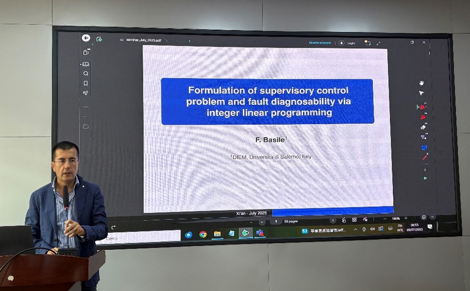 讲座于7月9日下午在临潼校区骊山校园15教323会议室进行。Fanti教授和Basile教授分别做了题为《Artificial intelligence based approaches for managing urban mobility involving cooperative, connected and automated vehicles》和《Formulation of supervisory control problem and fault diagnosability via integer linear programming》的报告,为公司研究生提供了人工智能、自动驾驶、故障诊断、以及复杂系统建模方向的学术前沿。