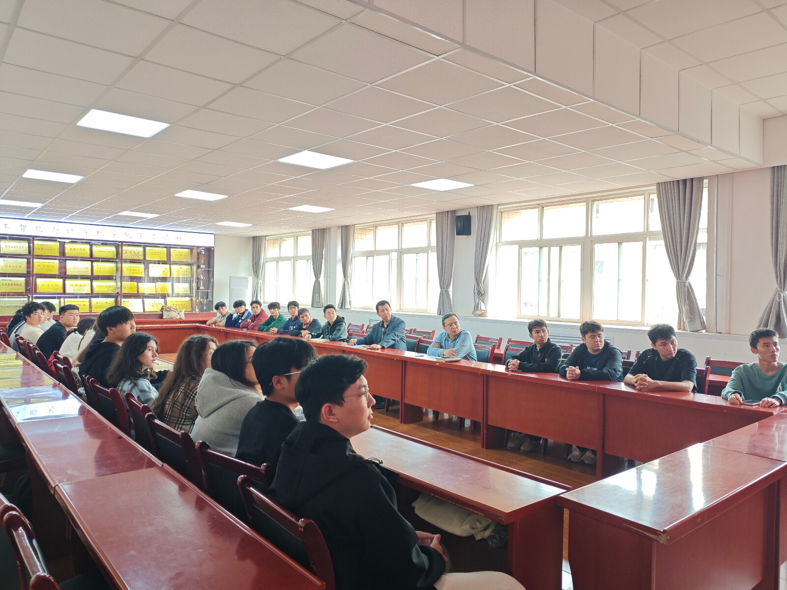 会上,师生共同观看了中央电视台新闻联播《新疆维吾尔自治区成立70周年庆祝大会隆重举行 习近平出席大会》;共同学习了习近平总书记在中央民族工作会议和全国民族团结进步表彰大会上的重要讲话精神;优秀员工代表作了经验交流;参会员工结合我国成立76年来的丰功伟绩、民族团结的重要意义、个人成长收获和困惑等内容依次进行发言。