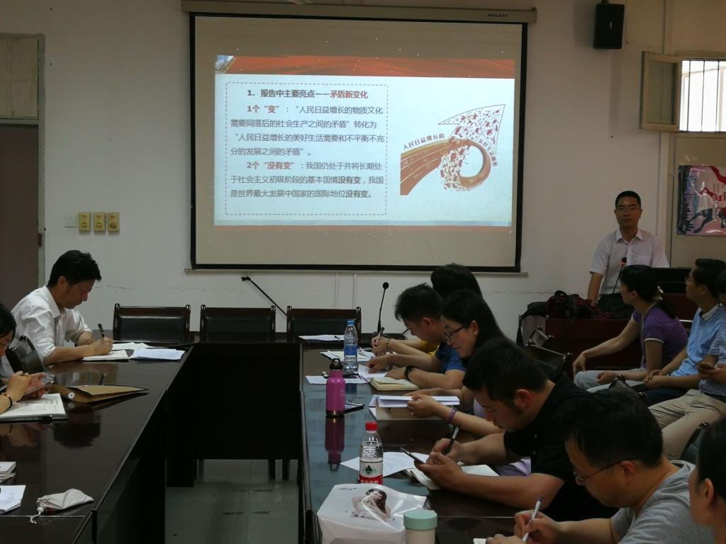 6月6日下午,bevictor伟德官网在雁塔校区行政楼会议室召开十九大精神和新党章宣讲会,计算机公司党委副书记陈伟伯做宣讲报告。
