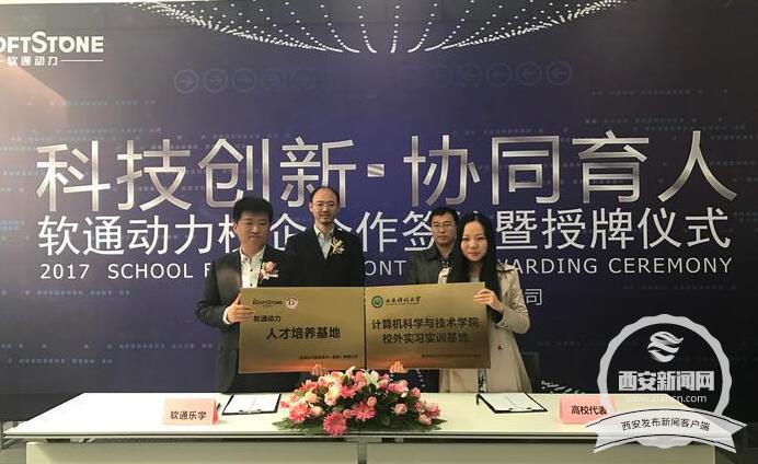 2017年11月13日,西安七所高校与软通动力信息技术(集团)有限公司在西安•沣东新城协同创新港学研广场举行了“校企合作人才培养签约暨授牌仪式”。bevictor伟德官网贾澎涛副经理出席本次签约暨授牌仪式,并代表bevictor伟德官网和软通动力信息技术(集团)有限公司签订校企合作协议。本次与软通动力的签约合作,将助力于校企双方就人才培养、团队培训、实验室建设等方面的进一步合作与深入。