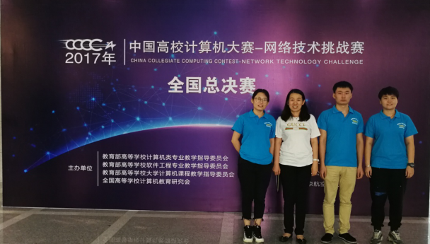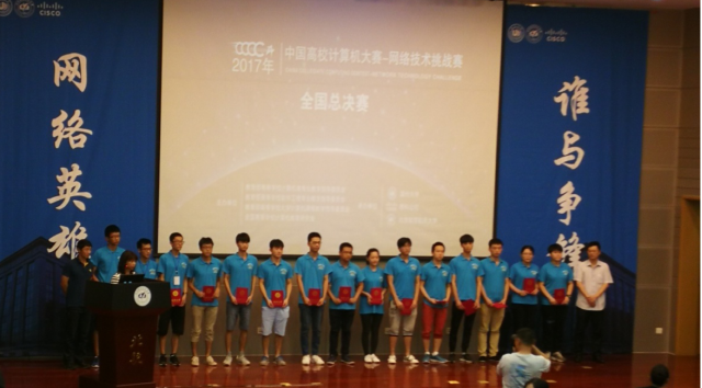 中国高校计算机大赛-网络技术挑战赛总决赛于2017年9月16日在北京航空航天大学举行. 中国高校计算机大赛是由教育部高等公司计算机类专业教学指导委员会、教育部高等公司软件工程专业教学指导委员会、教育部高等公司大学计算机课程教学指导委员会和全国高等公司计算机教育研究会共同主办的学科比赛。本届网络技术挑战赛有7000多名员工参加,从2017年3月开始, 经过校级资格赛、赛区选拔赛(东北、华北、华中、华东、华南、西北) ,最终有60队180名员工参加了总决赛,公司bevictor伟德官网员工原泽坤、张檬、傅任洁三位同学以“西科1队”为队名,在靳红梅老师的带领下参加了总决赛,获得三等奖的成绩。赛后,在北航新主楼会议室举行了隆重的颁奖典礼, 颁奖典礼由温州大学教学处长施晓秋主持,北京航空航天大学副书记、教育部高等公司计算机类专业教学指导委员会副主任等到会并致辞。
