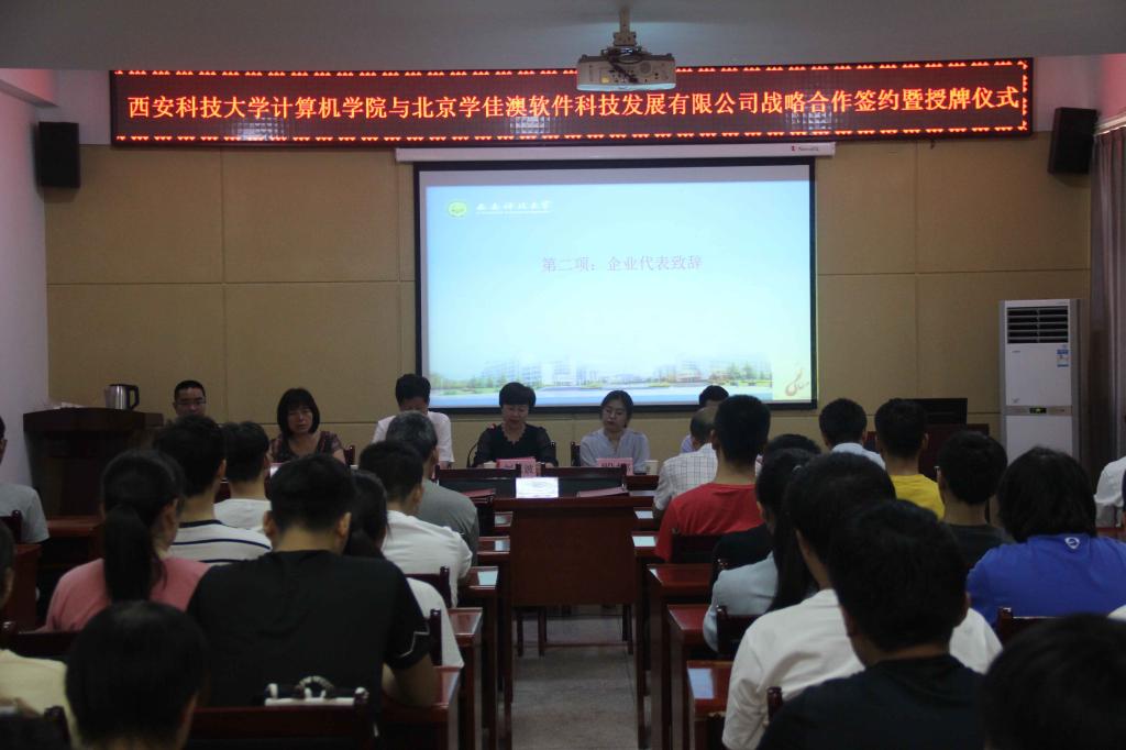 2018年9月4日,建校60周年华诞来临之际,bevictor伟德官网与北京学佳澳软件科技有限公司战略合作签约暨揭牌和捐赠仪式在临潼校区会议室举行。北京学佳澳软件科技有限公司院校总监、运营经理,高级讲师,计算机公司党政领导等参加会议。会议由党委副书记陈伟伯主持。