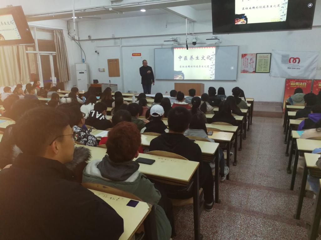 董军辉以《医祖扁鹊的防病养生之道》为题,从抵御诺如病毒讲起,阐述了扁鹊的“六不治”和十二时辰养生。通过对青少年健康大数据的分析,提醒在场师生要养成良好的作息习惯、卫生习惯和饮食习惯。他还讲授了中医的起源,号召大家要坚守中华文化离场,传承中华文化基因。