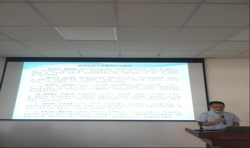 党委副书记陈伟伯领学习近平总书记在教育大会、清华大学考察时对加强教师队伍建设要求和对广大教师的希望;副经理于振华领学“伟德官网bv1946教师行为规范”;副经理马天带领全体教师庄严宣誓。罗晓霞、张小艳、许晓阳、马天、邓凡、白生宝6名教师结合自身成长经历和教学、科研、管理服务经验谈认识体会。