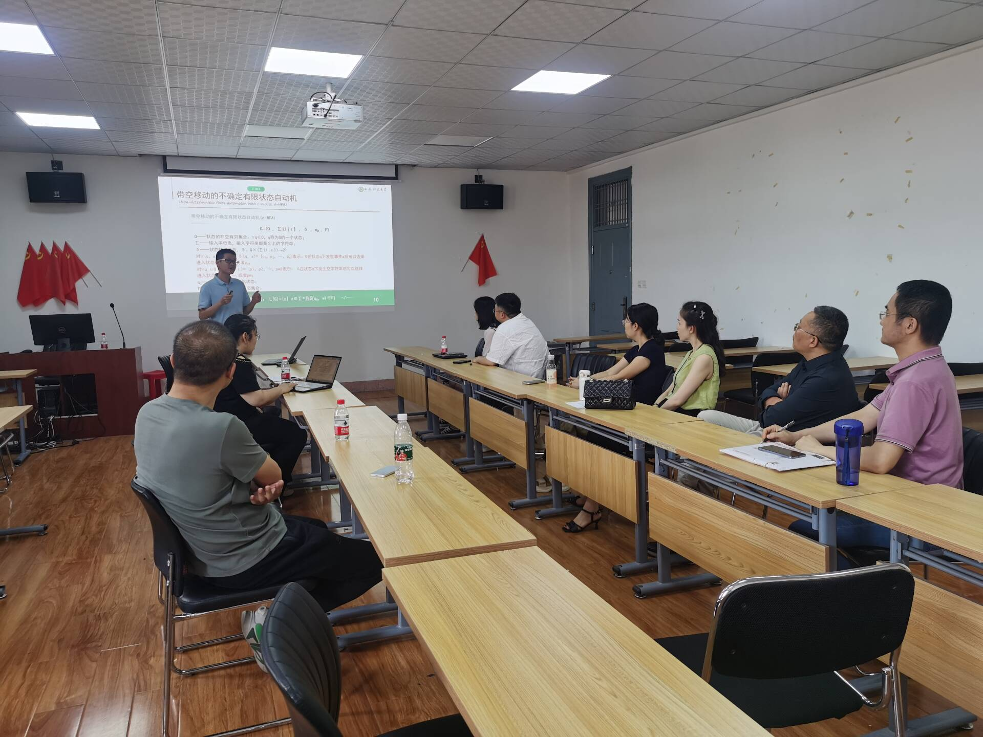 在汇报活动中,三位近5年入职的青年教师丛旭亚、尹慧平和张文超,分别选择形式语言与自动机的带空移动的不确定自动机与确定的自动机转化的章节、数据结构与算法的哈夫曼树的构造章节和深度学习课程的反向传播算法章节,进行生动的讲解,各位青年教师纷纷展示他们在教学过程中的创新方法和独特见解。