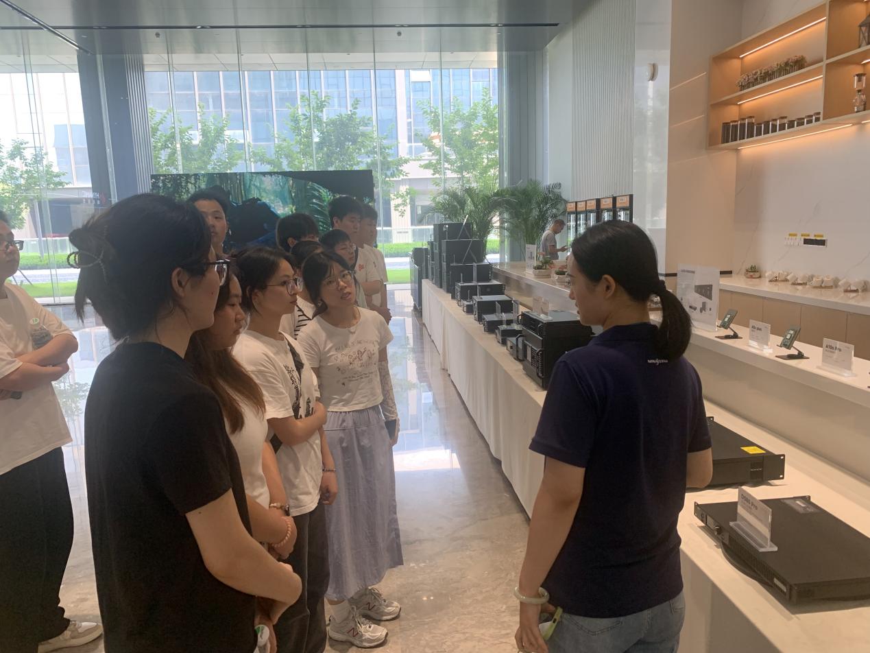 诺瓦星云技术负责人带领实践团同学们参观公司拳头产品。实践团逐一参观了诺瓦星云的各个核心工作区域,包括公共办公区、显示控制系统区、测试实验室、虚拟测试拍摄场地等区域,对公司整体环境有了更加全面而深入的了解。