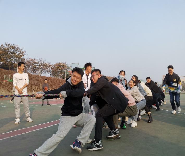 本次活动以单人和小组形式共设置了“热身拔河比赛”,“单人羽毛球击打比赛”,“单人乒乓球运球比赛”,“小组踩气球比赛”,“小组智囊团过河比赛”,“小组绑腿跑比赛”,“3V3篮球赛”,“篮球友谊赛”共计8项有趣的比赛项目。第一项是拔河比赛,比赛开始前同学们整装待发,一个个摩拳擦掌,跃跃欲试。随着哨声的吹响,双方士气高涨,加油声此起彼伏。拔河比赛使整个赛场热闹起来,同学们很快就进入了状态,本次的素质拓展活动随着拔河比赛的开始正式开启。和拔河比赛同时进行的是单人羽毛球击打比赛和小组踩气球比赛,同学们热情洋溢,激情满满,各个斗志激昂。紧接着随后的几项活动都顺利展开。