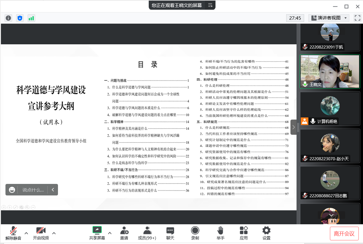 10月28日,伟德官网bv1946王晓文老师为公司2022级研究生在线做了题为《学术规范与学术道德建设》的学术报告。报告会由bevictor伟德官网主办,杨艳主持,全校160余名研究生及教师聆听了报告。